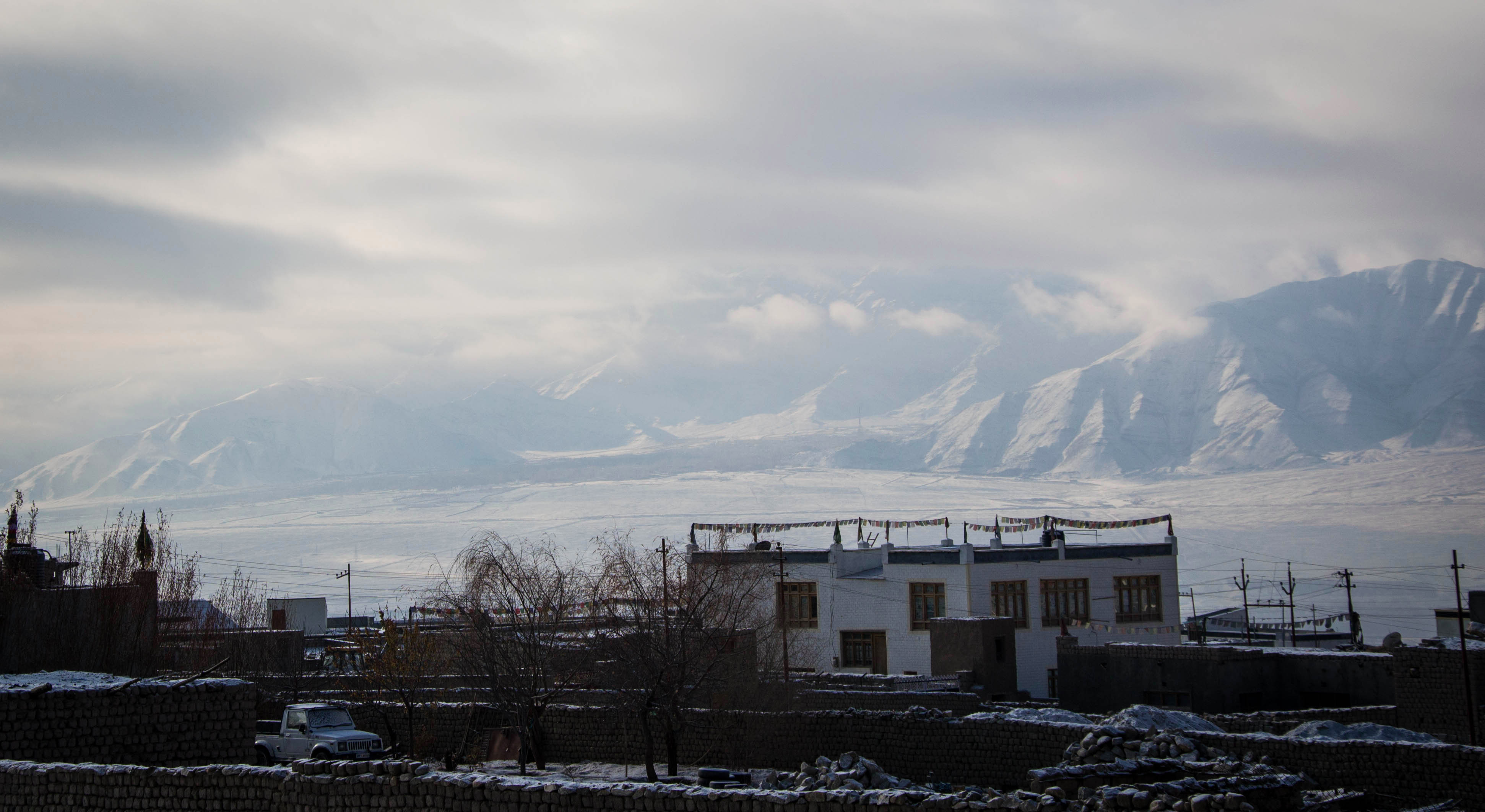 Idag vaknade vi som barn på julafton då snön äntligen nått Leh. Det känns faktiskt som att äntligen är rätt ord, lite kallare blir det men det känns mer rättfärdigat med kyla om vi får lite snö på köpet. Vi skyndade ut för att fota lite innan solen smälter det lilla som lägger sig inne i stan. Kallt var det men också riktigt fint och lite mysigt med snön. Efter vår lite överdrivna glädje och reaktion kommer det nog bli svårt att vidhålla att det faktiskt blir kallt i Sverige också och att det inte på något sätt är första gången vi ser snö.