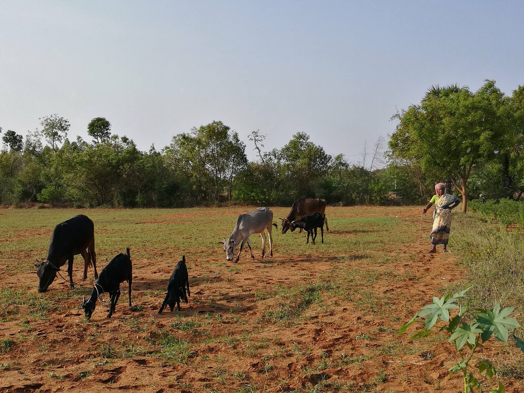 Bonden Kallimuthu berättar för oss att på grund av klimatförändringar och uteblivna monsunregn bestämde han sig för att byta ut de grödor som kräver mycket vatten mot mindre vattenkrävande. Exempel på grödor som behöver mycket vatten är sockerrör och ris. För några år sedan bytte han därför ut sina sockerrör mot chili, tapioca och andra mindre vattenkrävande grödor.